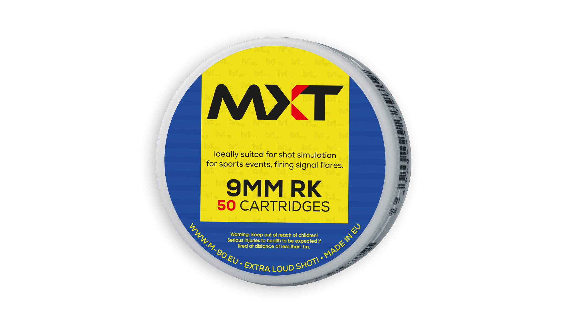 Extra loud shot. Ideally suited for shot simulation for sports events, firing signal flares, leisure time and replacement for live ammunition in motion picture industry.